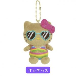 Sanrio Hello Kitty Summer Tan Mascot Keychain Rainbow Swimsuit