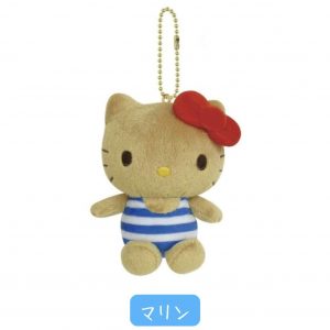 Sanrio Hello Kitty Summer Tan Mascot Keychain Rainbow Marine Blue Stripe